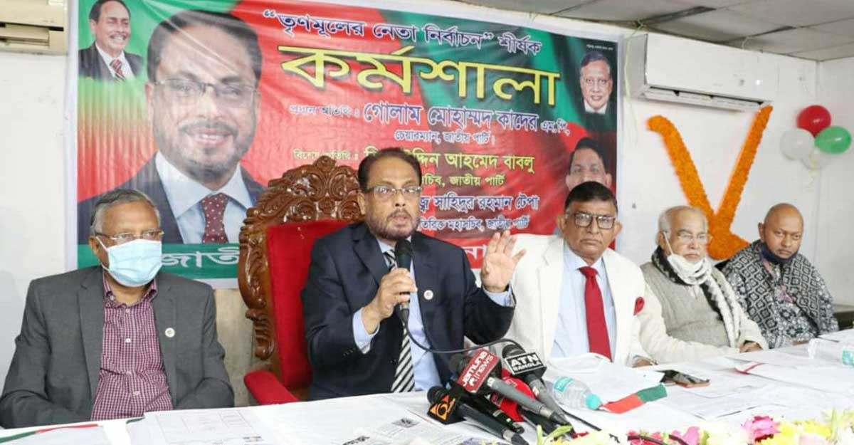 কর্মশালার উদ্বোধনী অনুষ্ঠানে বক্তব্য রাখছেন জাতীয় পার্টির চেয়ারম্যান জি এম কাদের