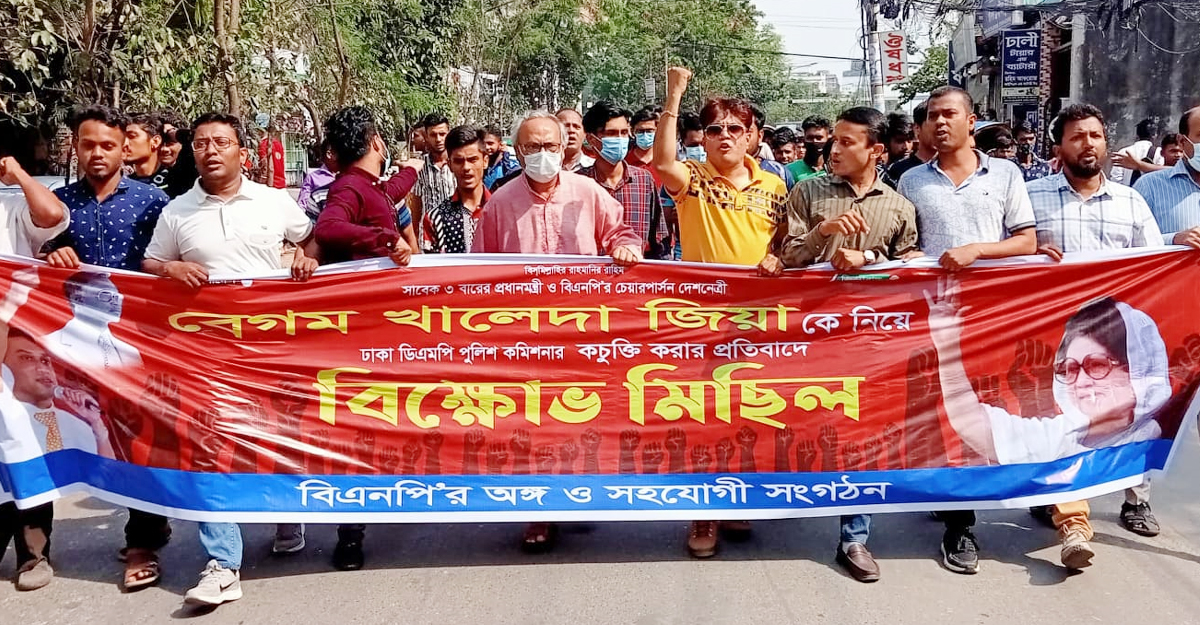 বিএনপি চেয়ারপারসন খালেদা জিয়াকে নিয়ে ডিএমপি কমিশনারের ‘কটূক্তির’ প্রতিবাদে বিক্ষোভ মিছিল করেছে দলটি। বৃহস্পতিবার (৩১ মার্চ) দুপুরে দলের সিনিয়র যুগ্ম মহাসচিব রুহুল কবির রিজভীর নেতৃত্বে রাজধানীর ধানমন্ডির শংকর এলাকায় এ মিছিল অনুষ্ঠিত হয়।