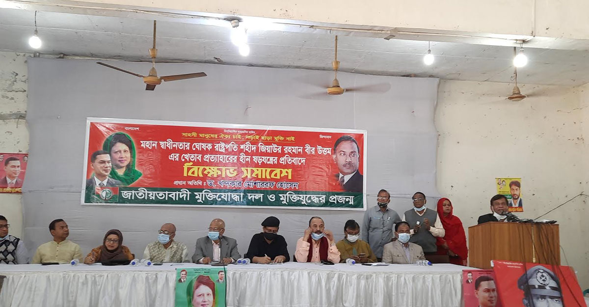 রোববার (১৪ ফেব্রুয়ারি) দুপুরে জাতীয় প্রেসক্লাব মিলনায়তনে জাতীয়তাবাদী মুক্তিযোদ্ধা দল ও মুক্তিযুদ্ধের প্রজন্ম আয়োজিত বিক্ষোভ সমাবেশে তিনি এসব কথা বলেন। মুক্তিযুদ্ধে বীরত্বপূর্ণ অবদানের জন্য রাষ্ট্রপ্রদত্ত জিয়াউর রহমানের ‘বীর উত্তম’ খেতাব বাতিলের প্রতিবাদে এ বিক্ষোভ সমাবেশের আয়োজন করা হয়।