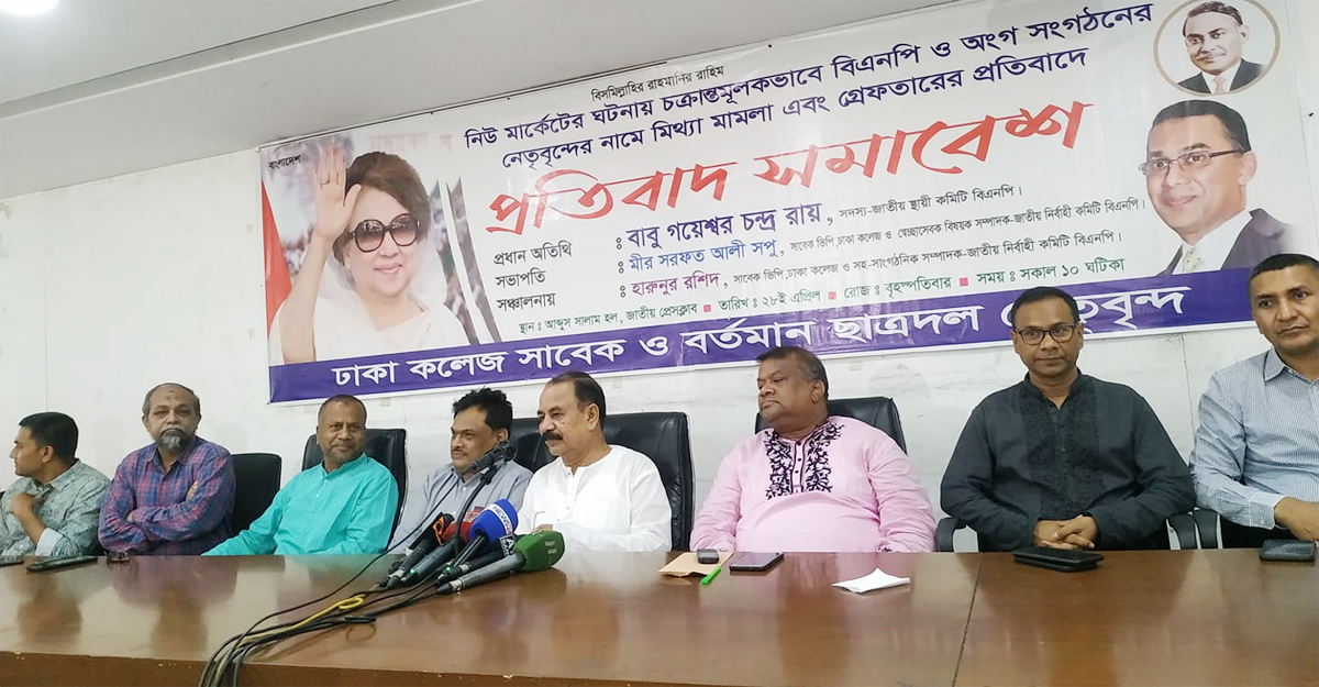 বৃহস্পতিবার (২৮ এপ্রিল) জাতীয় প্রেসক্লাবের আবদুস সালাম হলে নিউ মার্কেটের ঘটনায় ‘চক্রান্তমূলকভাবে বিএনপি ও অঙ্গ সংগঠনের নেতৃবৃন্দের নামে মিথ্যা মামলা ও গ্রেপ্তারে’র প্রতিবাদে ঢাকা কলেজের সাবেক ও বর্তমান ছাত্রনেতৃবৃন্দ আয়োজিত প্রতিবাদ সমাবেশে তিনি এসব কথা বলেন।