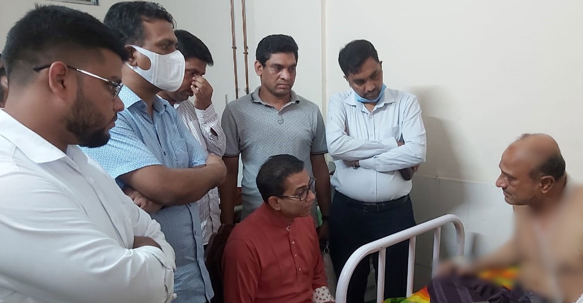 চট্টগ্রামের পটিয়ায় হামলার শিকার উপজেলা আওয়ামী লীগ নেতা জিতেন কান্তি গুহকে হাসপাতালে দেখতে গিয়েছিলেন দলটির কেন্দ্রীয় উপ প্রচার ও প্রকাশনা সম্পাদক আমিনুল ইসলাম আমিন।