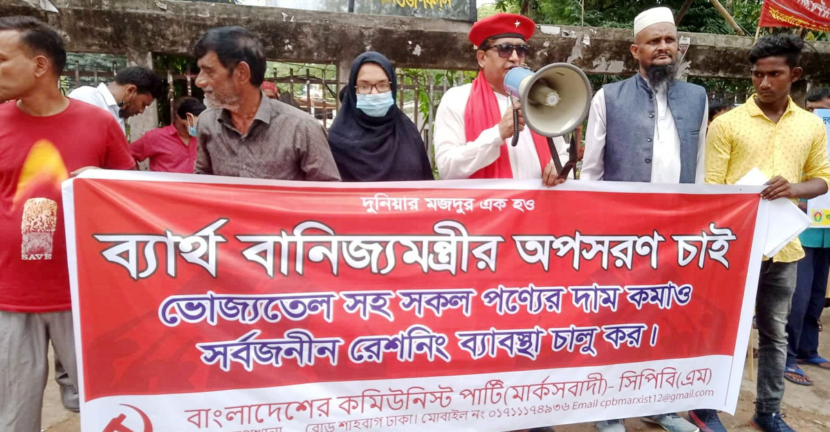 বাণিজ্যমন্ত্রীর অপসারণ ও ভোজ্যতেলসহ সব ধরনের পণ্যের দাম কমানোর দাবিতে সমাবেশ ও বিক্ষোভ মিছিল করেছে বাংলাদেশ কমিউনিস্ট পার্টি (মার্কসবাদী)।