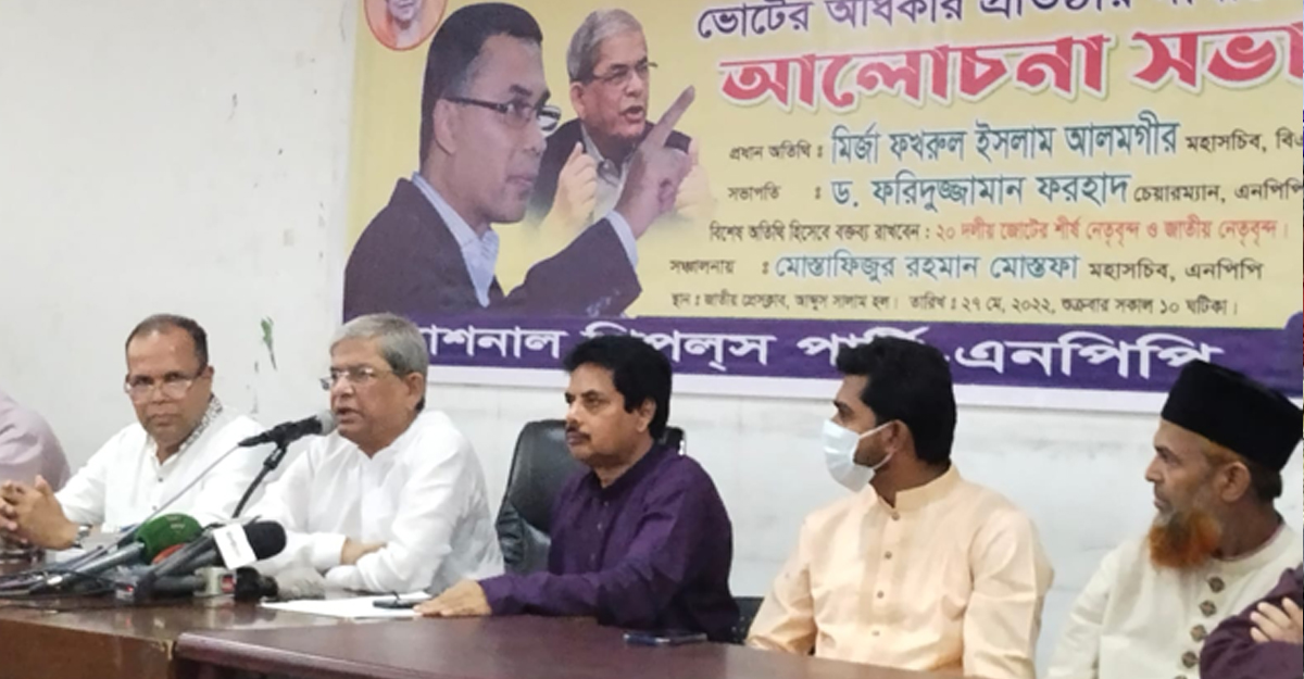 এনপিপির সভাপতি ড. ফরিদুজ্জামান ফরহাদের পরিচালনা আলোচনা সভায় আরও উপস্থিত ছিলেন দলটির মহাসচিব মোস্তাফিজুর রহমান মোস্তফা, বাংলাদেশ জাতীয় দলর চেয়ারম্যান গণঅধিকার পরিষদের সদস্য সচিব নুরল হক নুরু, অ্যাডভোকেট সৈয়দ এহসানুল হুদা প্রমুখ।