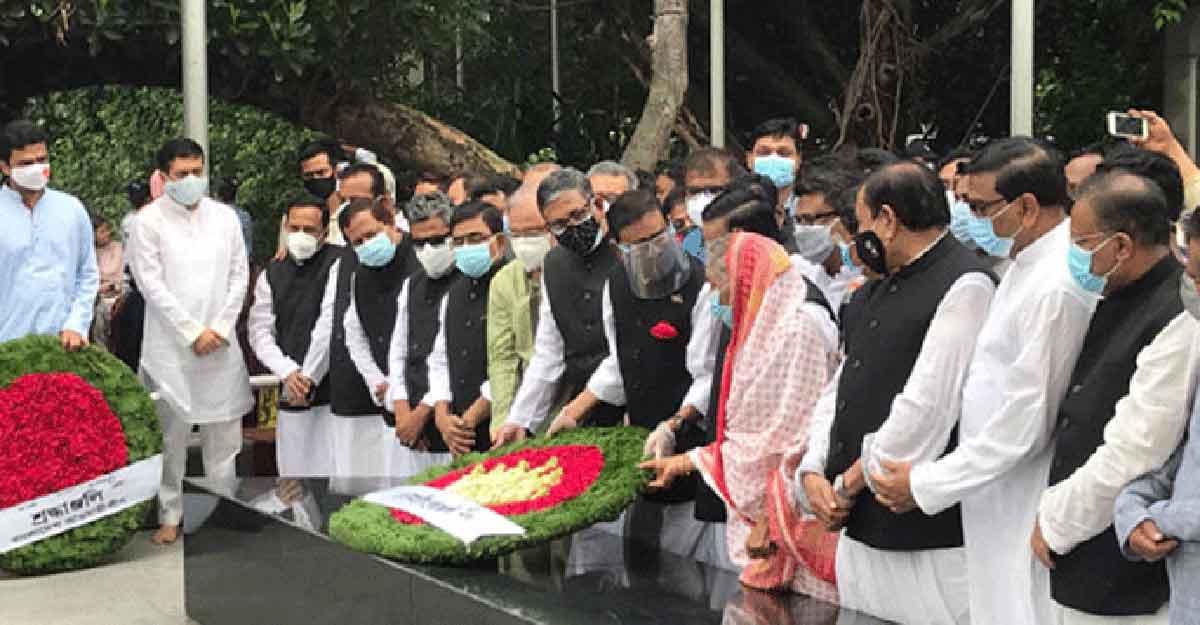 জাতির পিতা বঙ্গবন্ধু শেখ মুজিবুর রহমানের প্রতিকৃতিতে শ্রদ্ধা নিবেদন করেছেন আওয়ামী লীগের নেতারা।