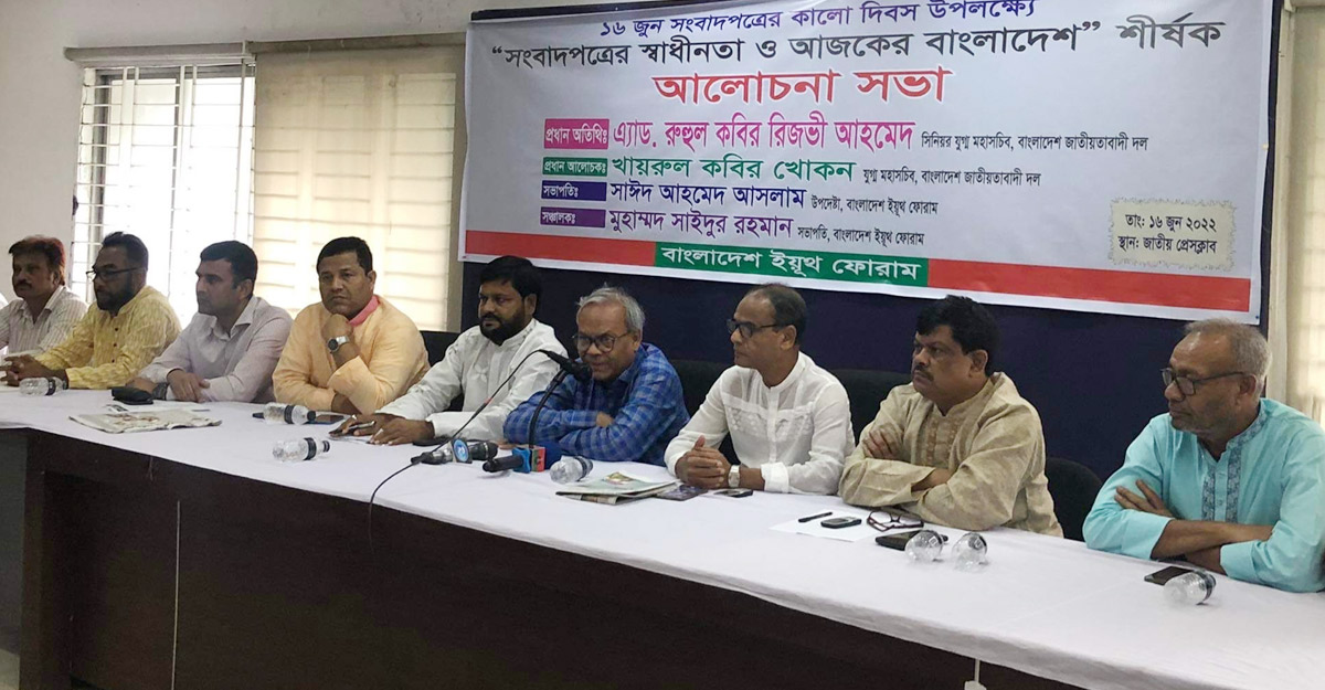 বৃহস্পতিবার (১৬ জুন) দুপুরে জাতীয় প্রেস ক্লাবে এক আলোচনা সভায় রিজভী এসব কথা বলেন। ১৬ জুন সংবাদপত্রের কালো দিবস উপলক্ষে ‘সংবাদপত্রের স্বাধীনতা ও আজকের বাংলাদেশ’ শীর্ষক এই আলোচনা সভার আয়োজন করে বাংলাদেশ ইয়ুথ ফোরাম।