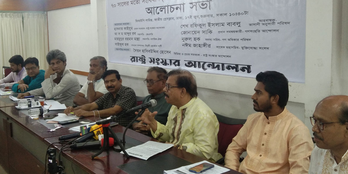 আলোচনা সভায় আরও বক্তব্য দেন বিপ্লবী ওয়ার্কাস পার্টির সাধারণ সম্পাদক সাইফুল হক, রাষ্ট্র সংস্কার আন্দোলনের প্রধান সমন্বয়ক হাসনাত কাইয়ুম, জেএসডির কার্যকরী সাধারণ সম্পাদক শহীদউদ্দিন মাহমুদ স্বপন।