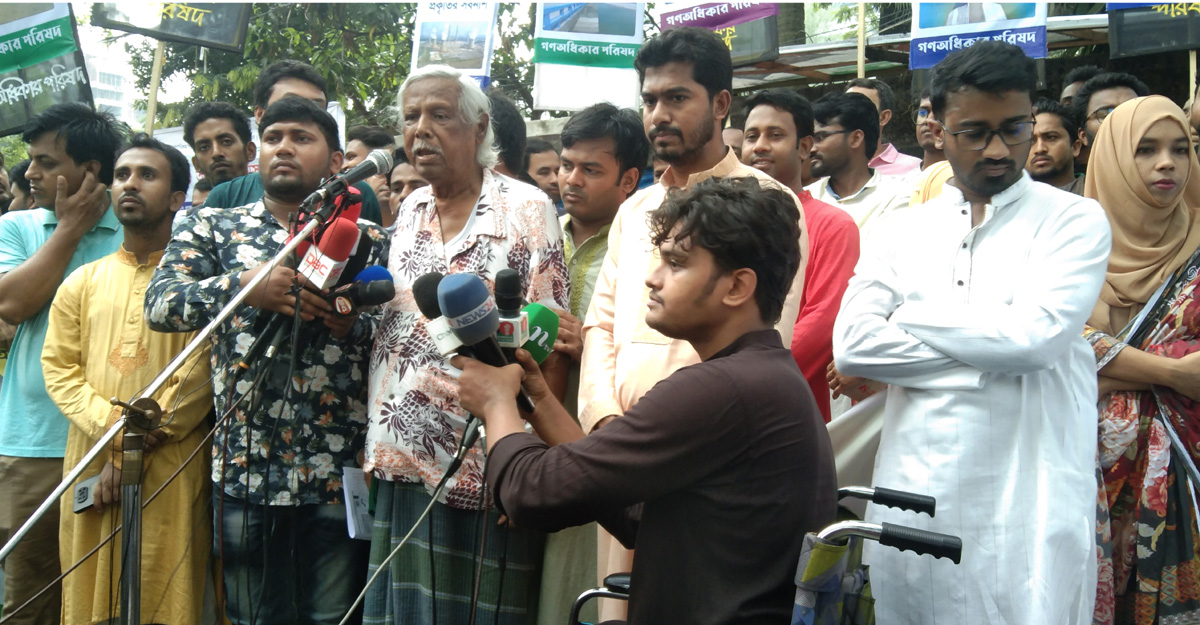 বিক্ষোভ সমাবেশে বক্তব্য রাখেন গণঅধিকার পরিষদের সদস্য সচিব নুরুল হক নুর, সিনিয়র যুগ্ম আহবায়ক রাশেদ খান, যুগ্ম আহবায়ক অধ্যাপক মালেক ফরায়জী, তারেক রহমান, আমিন আফসারীসহ ছাত্র ও গণঅধিকার পরিষদের নেতারা।