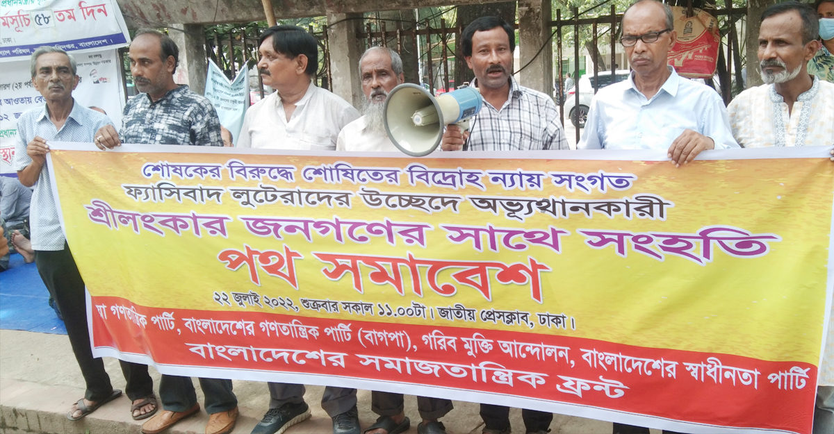 শুক্রবার (২২ জুলাই) জাতীয় প্রেস ক্লাবের সামনে বাংলাদেশ সমাজতান্ত্রিক ফ্রন্ট আয়োজিত শ্রীলঙ্কার জনগণের সঙ্গে সংহতি জানিয়ে পথ সমাবেশে তিনি এসব কথা বলেন।
