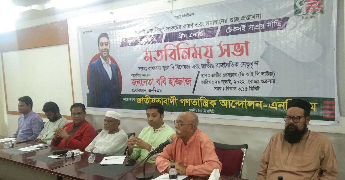 শুক্রবার (২৯ জুলাই) বিকেল ৪টায় জাতীয় প্রেস ক্লাবের তফাজ্জল হোসেন মানিক মিয়া মিলনায়তনে জাতীয়তাবাদী গণতান্ত্রিক আন্দোলন (এনডিএম) আয়োজিত জ্বালানি এবং বিদ্যুৎ সংকটের কারণ ও সমাধানের গুচ্ছ প্রস্তাবনা শীর্ষক মতবিনিময় সভায় তিনি এসব কথা বলেন।