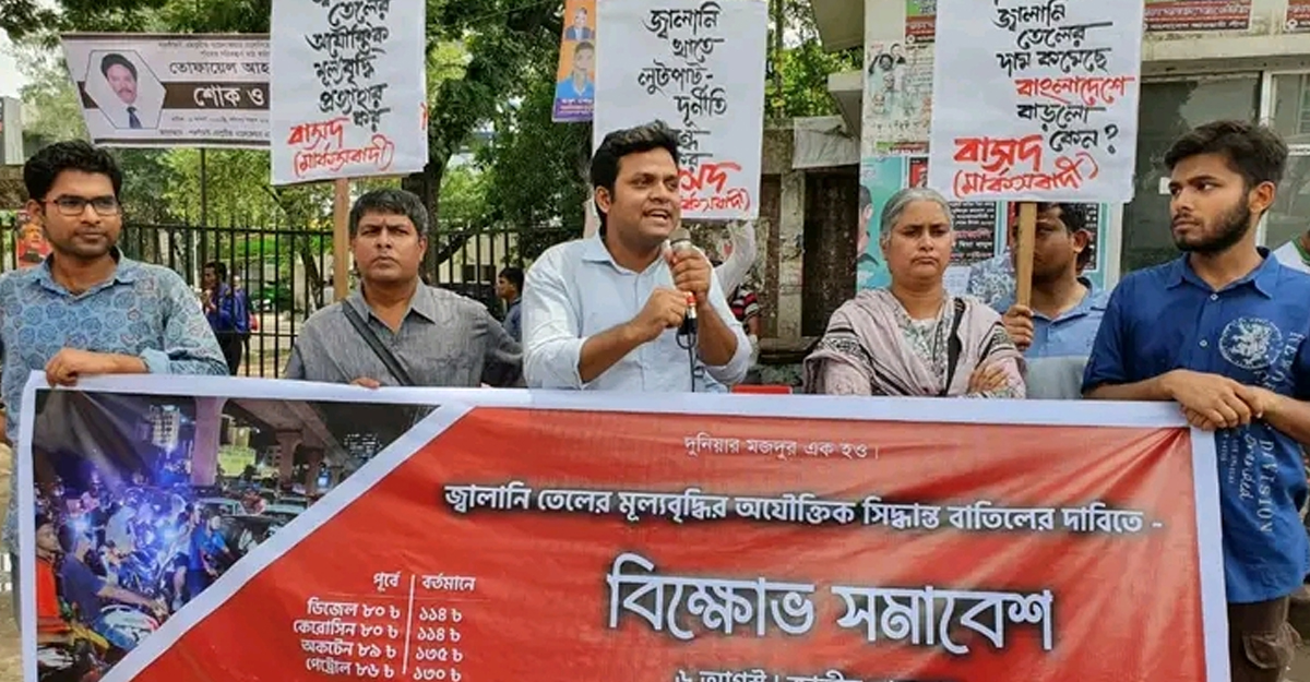 কেন্দ্রীয় নির্বাহী ফোরামের সমন্বয়ক কমরেড মাসুদ রানা বলেন, গতকাল গভীর রাতে বৈশ্বিক বাজারে মূল্য বৃদ্ধির মিথ্যা অজুহাতে সরকার জ্বালানি তেলের দাম ৫০ শতাংশ বৃদ্ধি করেছে, যা পূর্বের সব রেকর্ড ছাড়িয়ে গেছে। সরকার আরও বলেছে, পার্শ্ববর্তী দেশ ভারতে যাতে তেল পাচার না হয় তার জন্য দাম বাড়িয়েছে। আইএমএফের কাছে সরকার ৪৫০ কোটি ডলার ঋণ চাইলে তারা জ্বালানি খাতে ভর্তুকি তুলে নেওয়ার শর্ত আরোপ করে।
