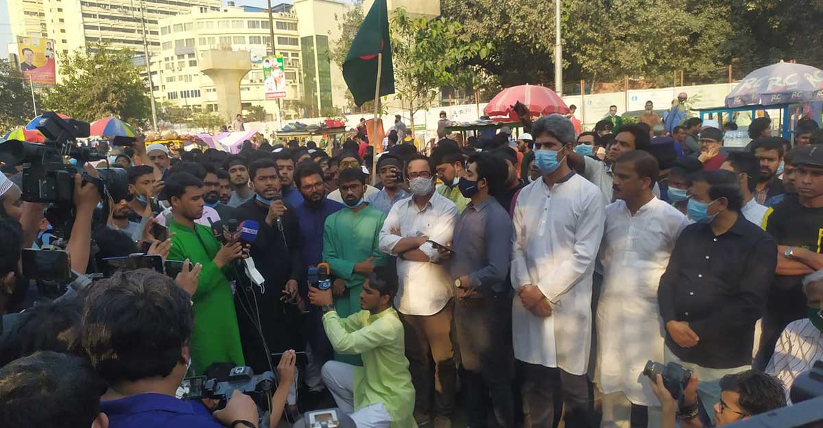 শাহবাগে লেখক মুশতাকের গায়েবানা জানাজায় অংশ নেন নুরুল হক নুর/ ছবি: ঢাকা পোস্ট