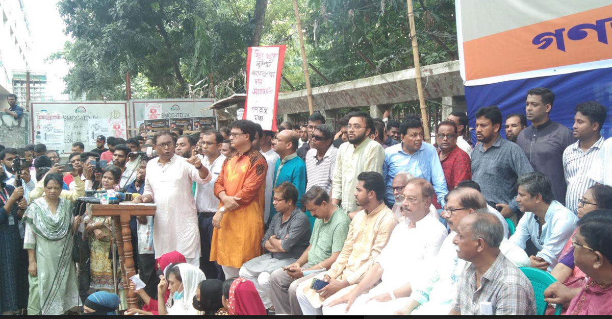 বিক্ষোভ সমাবেশে আরও বক্তব্য রাখেন, জেএসডি সভাপতি আ স ম আবদুর রব, মাহমুদুর রহমান মান্না, নুরুল হক নুর সহ গণতন্ত্র মঞ্চের নেতারা।