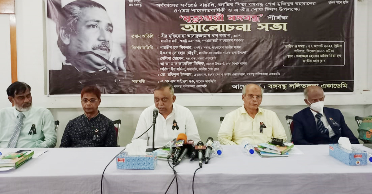 শনিবার (২৭ আগস্ট) সন্ধ্যায় জাতীয় প্রেস ক্লাবের তাফাজ্জল হোসেন মানিক মিয়া মিলনায়তনে বঙ্গবন্ধু শেখ মুজিবুর রহমানের ৪৭তম শাহাদাতবার্ষিকী উপলক্ষে ‘মৃত্যুঞ্জয়ী বঙ্গবন্ধু’ শীর্ষক আলোচনা সভায় প্রধান অতিথির বক্তব্যে তিনি এ কথা বলেন।