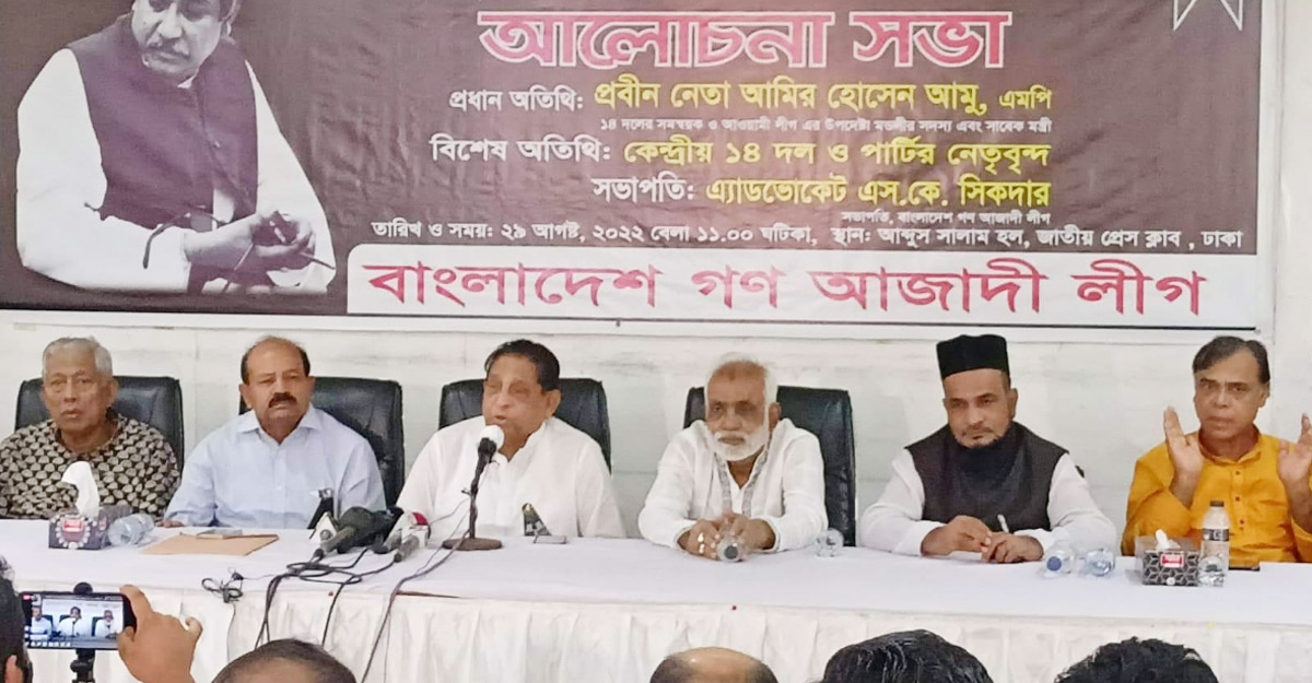 সোমবার (২৯ আগস্ট) জাতীয় প্রেস ক্লাবের আবদুস সালাম হলে আয়োজিত এক আলোচনা সভায় তিনি এসব কথা বলেন। জাতির পিতা বঙ্গবন্ধু শেখ মুজিবুর রহমানের ৪৭তম শাহাদতবার্ষিকী উপলক্ষে গণ আজাদী লীগ সভাটির আয়োজন করে।