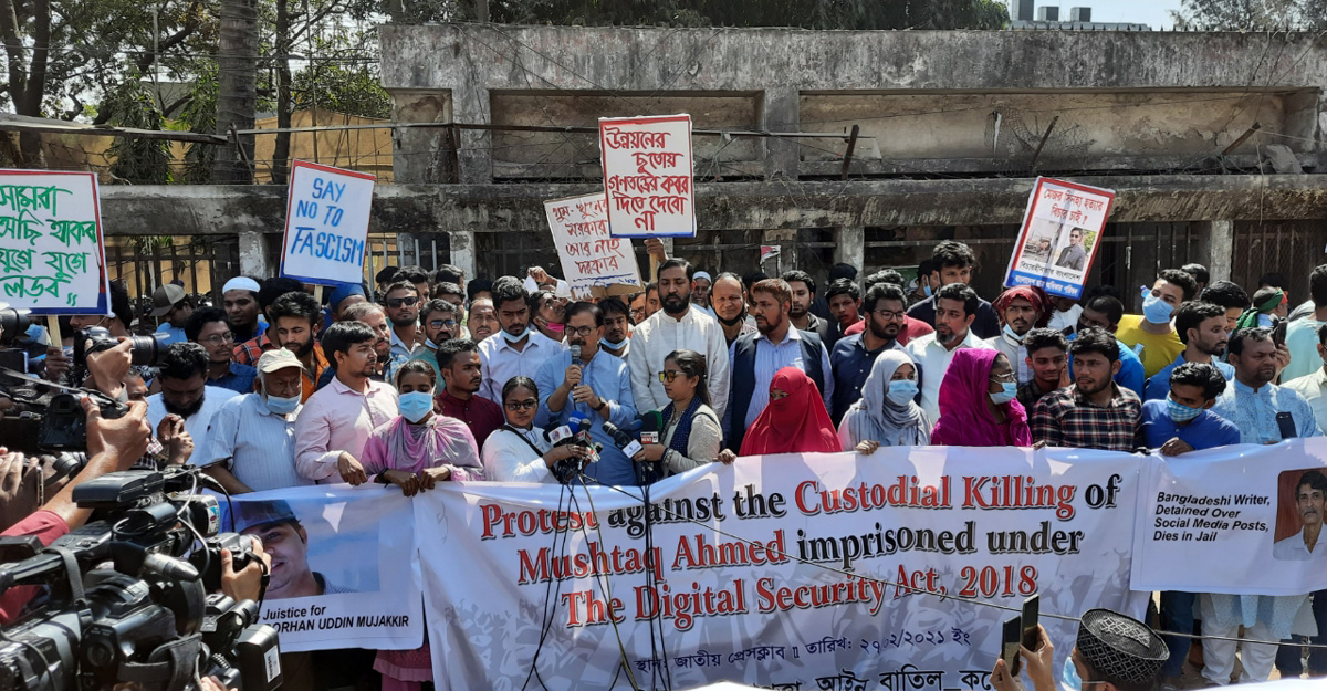 ডাকসুর সাবেক ভিপি নুরুল হক নুর, আমরা এখানে সমবেত হয়েছি মুশতাক হত্যার বিচারের দাবিতে এবং ডিজিটাল নিরাপত্তা নামে কালো আইন বাতিলের দাবিতে। ২৫ ফেব্রুয়ারি যেদিন মুশতাক মারা গিয়েছে সেদিন স্বাধীন বাংলাদেশের ইতিহাসের একটি জঘন্যতম দিন। এ ২৫ ফেব্রুয়ারিতে সেনাবাহিনীর ৫৭ জন কর্মকর্তাকে বিডিআর বিদ্রোহের নামে পরিকল্পিতভাবে হত্যা করা হয়েছে।