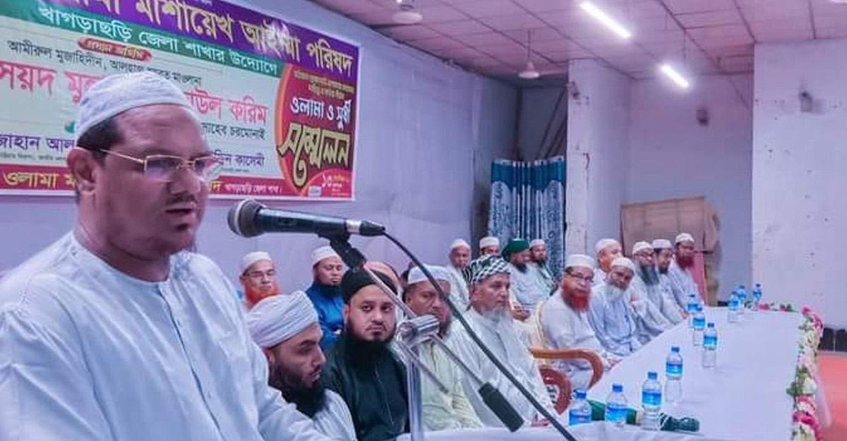মঙ্গলবার (১৩ সেপ্টেম্বর) বিকেলে খাগড়াছড়ির অফিসার্স ক্লাব মিলনায়তনে জাতীয় ওলামা মাশায়েখ আইম্মা পরিষদ খাগড়াছড়ি জেলা শাখা আয়োজিত ওলামা ও সুধী সম্মেলনে প্রধান অতিথির বক্তব্যে তিনি এসব কথা বলেন।