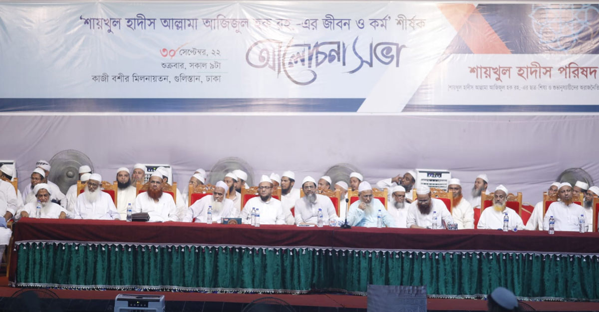 শুক্রবার (৩০ সেপ্টেম্বর) দুপুরে রাজধানীর গুলিস্তানে কাজি বশির উদ্দিন মিলনায়তনে ‘শাইখুল হাদীস আল্লামা আজিজুল হকের জীবন ও কর্ম’ শীর্ষক আলোচনা সভায় এ দাবি করা হয়। সভার আয়োজন করে শাইখুল হাদীস পরিষদ।