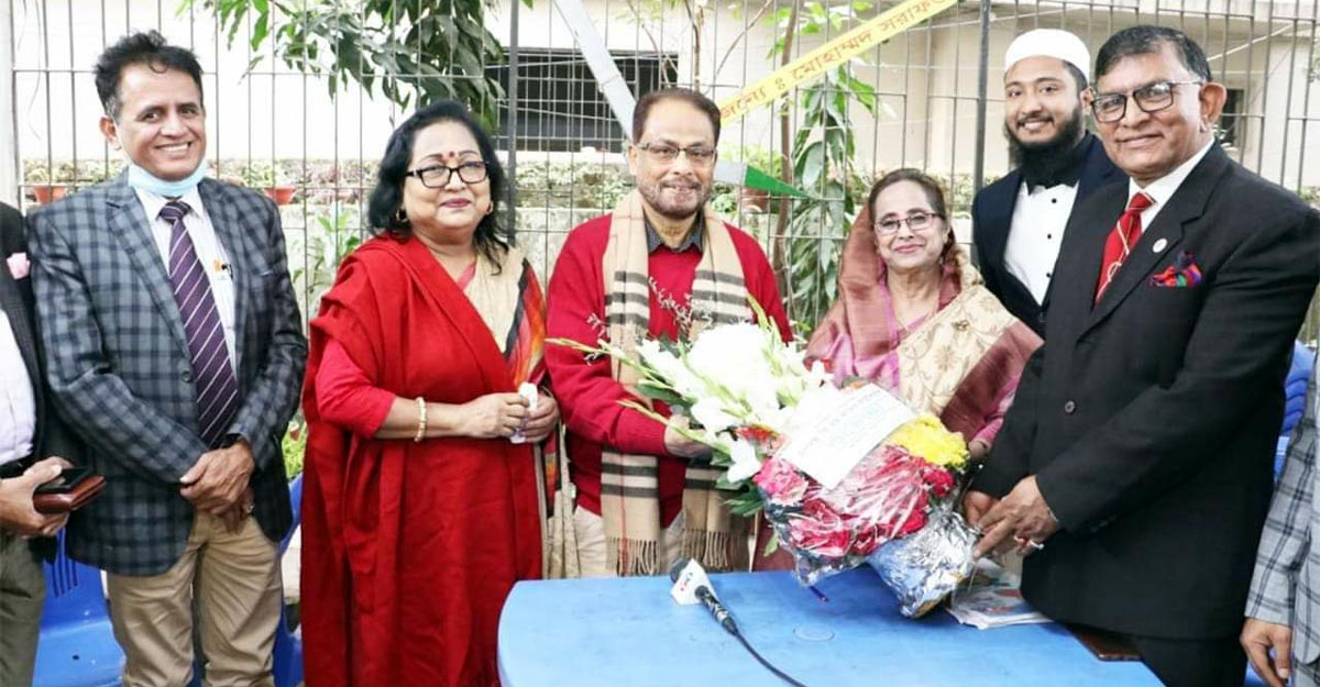 গোলাম মোহাম্মদ কাদেরকে ফুল দিয়ে শুভেচ্ছা জানাচ্ছেন