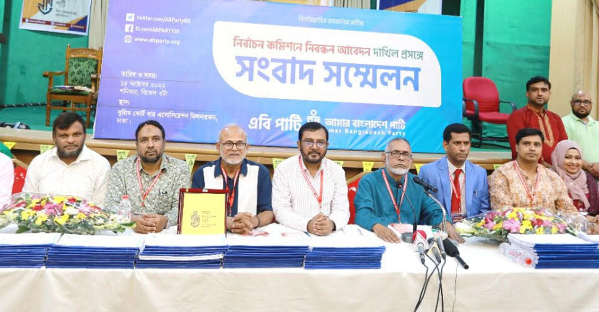 আগামী রোববার (১৬ অক্টোবর) নির্বাচন কমিশনের শর্ত অনুযায়ী সব দলিল দস্তাবেজসহ নিবন্ধনের আবেদন কমিশনে জমা দেওয়া হবে বলে জানিয়েছেন এবি পার্টির সদস্য সচিব মজিবুর রহমান মঞ্জু।