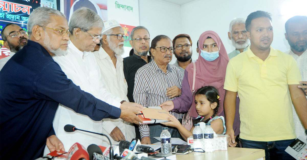 সংক্ষিপ্ত বক্তব্যে মির্জা ফখরুল চলমান আন্দোলনে নিহতদের প্রতি শ্রদ্ধা জানিয়ে তাদের আত্মত্যাগকে শক্তিতে পরিণত করে সকলের সোচ্চার হওয়ার আহ্বান জানান।