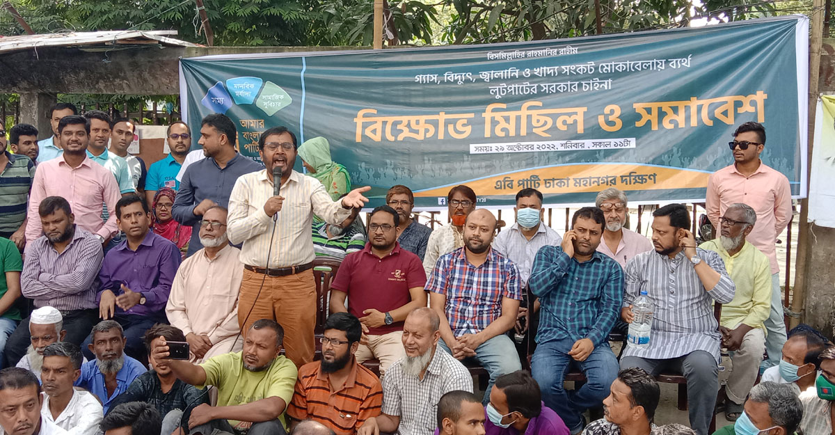 শনিবার (২৯ অক্টোবর) বেলা ১২টার দিকে জাতীয় প্রেসক্লাবের সামনে এবি পাটির ঢাকা মহানগর দক্ষিণ আয়োজিত গ্যাস, বিদ্যুৎ, জ্বালানি ও খাদ্য সংকট মোকাবিলায় ব্যর্থ সরকারের পদত্যাগের দাবিতে বিক্ষোভ সমাবেশ তিনি এসব কথা বলেন।