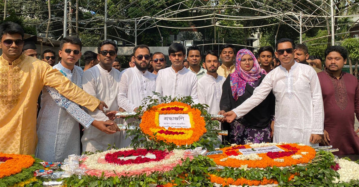 বঙ্গবন্ধুর প্রতিকৃতিতে আইন জেলা ছাত্রলীগের শ্রদ্ধা