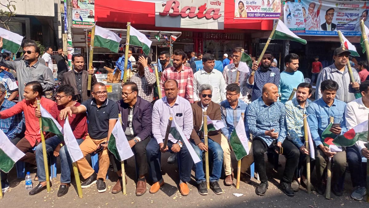 লাঠি-পতাকা হাতে যুবলীগের অবস্থান