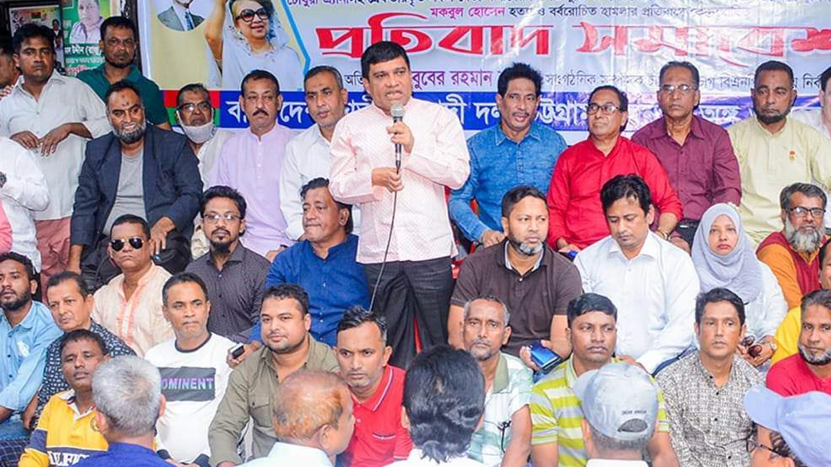 বিশেষ অতিথির বক্তব্যে কেন্দ্রীয় বিএনপির শ্রম সম্পাদক এ এম নাজিম উদ্দীন বলেন, ঢাকায় বিএনপির ওপর হামলা ও গ্রেপ্তারের ঘটনায় আবারও প্রমাণিত হলো আওয়ামী লীগ সরকারের রাজত্ব কত ভয়ংকর। বিএনপির শান্তিপূর্ণ কর্মসূচিতে পুলিশের এই হামলা ছিল পূর্বপরিকল্পিত। পুলিশ বাহিনীর হামলায় স্বেচ্ছাসেবক দল নেতা মকবুল নিহত হয়েছে।