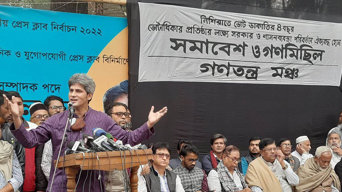 শুক্রবার (৩০ ডিসেম্বর) জাতীয় প্রেসক্লাবের সামনে আয়োজিত সমাবেশে এসব কথা বলেন তিনি।