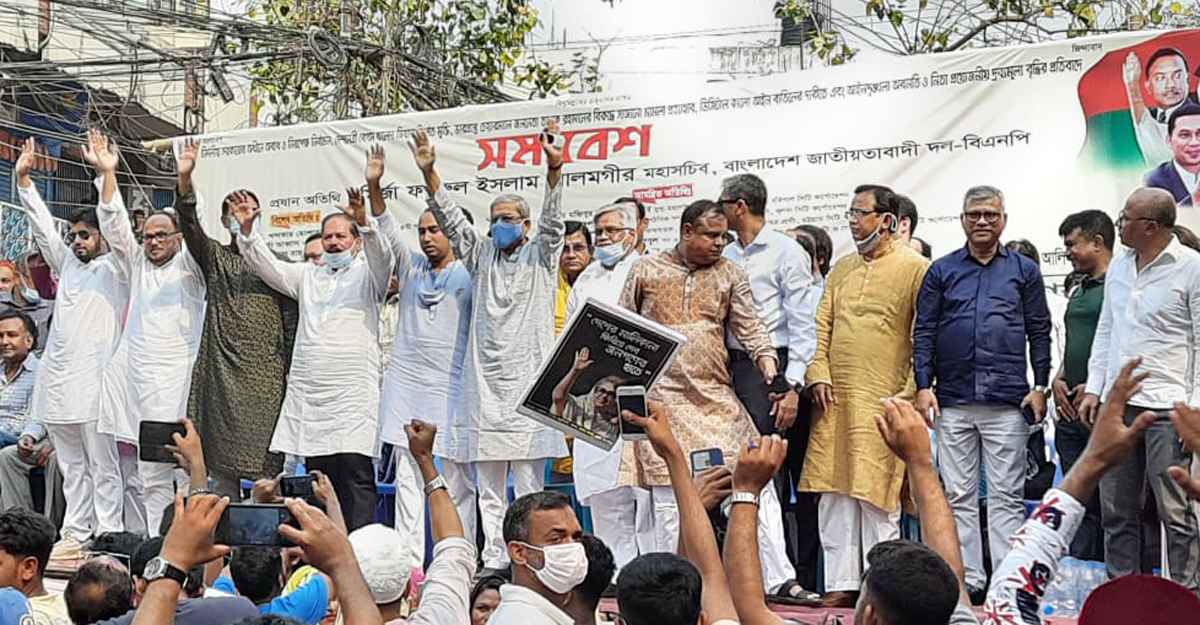 রাজধানীর তালতলা মার্কেটের সামনে আয়োজিত সভায় বক্তব্য রাখেন মির্জা ফখরুল ইসলাম আলমগীর