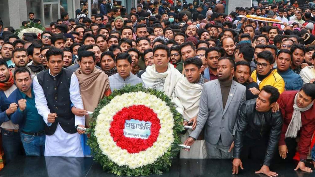 বুধবার (৪ জানুয়ারি) সকাল ৮টায় ছাত্রলীগের সভাপতি সাদ্দাম হোসেন ও সাধারণ সম্পাদক শেখ ওয়ালী আসিফ ইনানের নেতৃত্বে সংগঠনের নেতাকর্মীরা শ্রদ্ধা নিবেদন করেন।