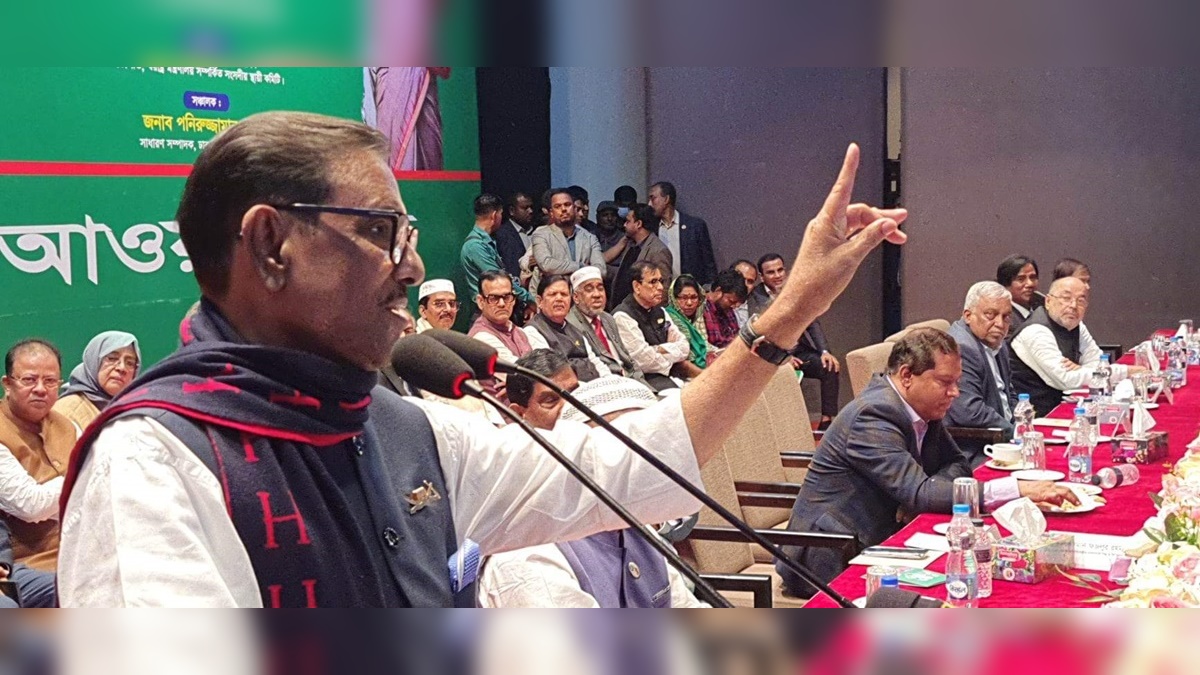 বঙ্গবন্ধু শেখ মুজিবুর রহমানের স্বদেশ প্রত্যাবর্তন দিবস উপলক্ষে ঢাকা জেলা আওয়ামী লীগ আয়োজিত আলোচনা সভায় বক্তব্য রাখছেন ওবায়দুল কাদের/ সংগৃহীত
