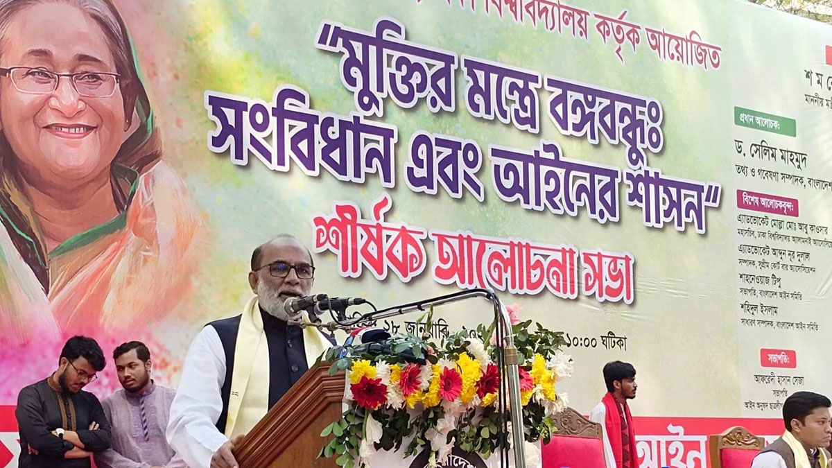 শনিবার (২৮ জানুয়ারি) দুপুরে ঢাকা বিশ্ববিদ্যালয়ের কাজী মোতাহার হোসেন ভবন প্রাঙ্গণে বাংলাদেশ ছাত্রলীগ, ঢাকা বিশ্ববিদ্যালয় আইন অনুষদ শাখা আয়োজিত ‘মুক্তির মন্ত্রে বঙ্গবন্ধু: সংবিধান এবং আইনের শাসন’ শীর্ষক আলোচনা সভায় প্রধান অতিথির বক্তব্যে তিনি এ মন্তব্য করেন।