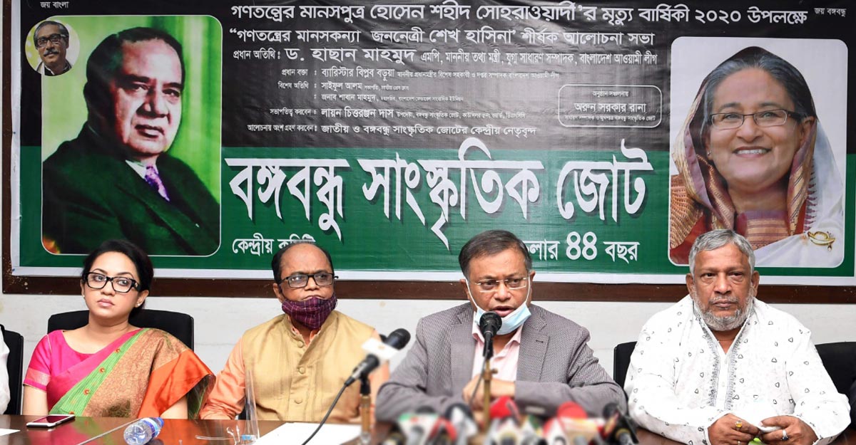 অবিভক্ত বাংলার তৎকালীন প্রধানমন্ত্রী গণতন্ত্রের মানসপুত্র হোসেন শহীদ সোহরাওয়ার্দীকে আওয়ামী লীগের অন্যতম প্রতিষ্ঠাতা হিসেবে শ্রদ্ধা জানিয়ে তথ্যমন্ত্রী বলেন, আওয়ামী লীগের সভাপতি হোসেন শহীদ সোহরাওয়ার্দীর নেতৃত্বে যখন আওয়ামী লীগ সর্বপাকিস্তান কেন্দ্রীয় সরকার গঠন করে তখনই ১৯৫৬ সালে পাকিস্তানের সংবিধান রচিত হয়, তার আগে পাকিস্তানের কোনো সংবিধান ছিল না। আওয়ামী লীগ কেন্দ্রীয় সরকার গঠন করার পরই মাতৃভাষা দিবস হিসেবে ২১ ফেব্রুয়ারি রাষ্ট্রীয়ভাবে পালন করা শুরু হয় এবং রাষ্ট্রীয়ভাবে দেশের বিভিন্ন স্থানে শহীদ মিনার নির্মিত হয়। বঙ্গবন্ধু শেখ মুজিবুর রহমান নিজে হোসেন শহীদ সোহরাওয়ার্দীকে নেতা হিসেবে মানতেন এবং খুবই শ্রদ্ধা রাখতেন।