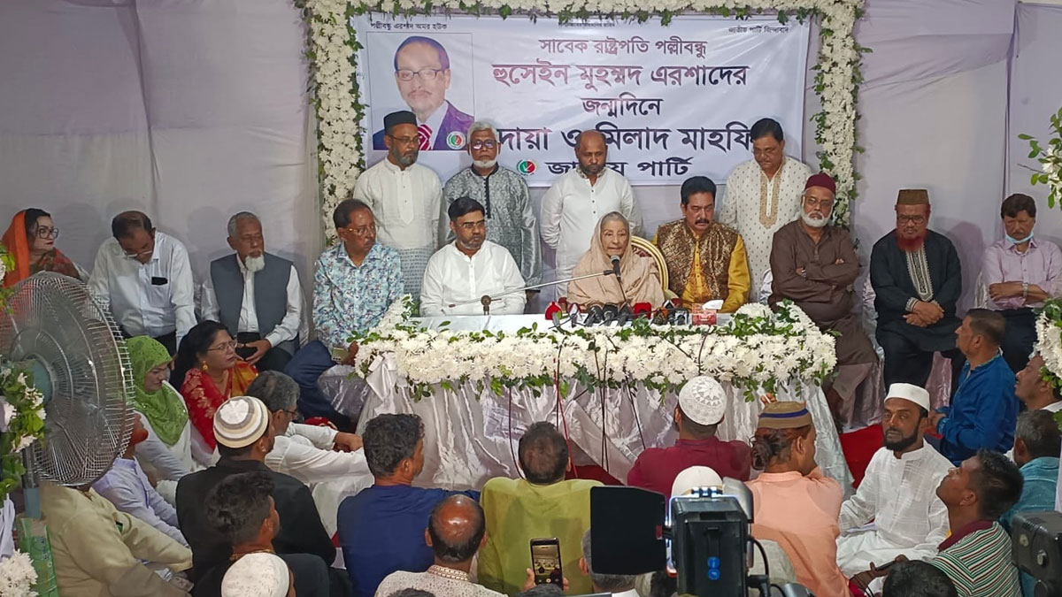 তিনি আরো বলেন, জাতীয় পার্টি এরশাদের নিজস্ব পার্টি। কল্যাণমূলক রাষ্ট্র প্রতিষ্ঠার লক্ষ্যে তিনি এই পার্টি দাঁড় করিয়েছেন। তিনি আর আমাদের মাঝে নেই। তার আত্মার মাগফিরাত কামনা করে সবাই দোয়া করি।