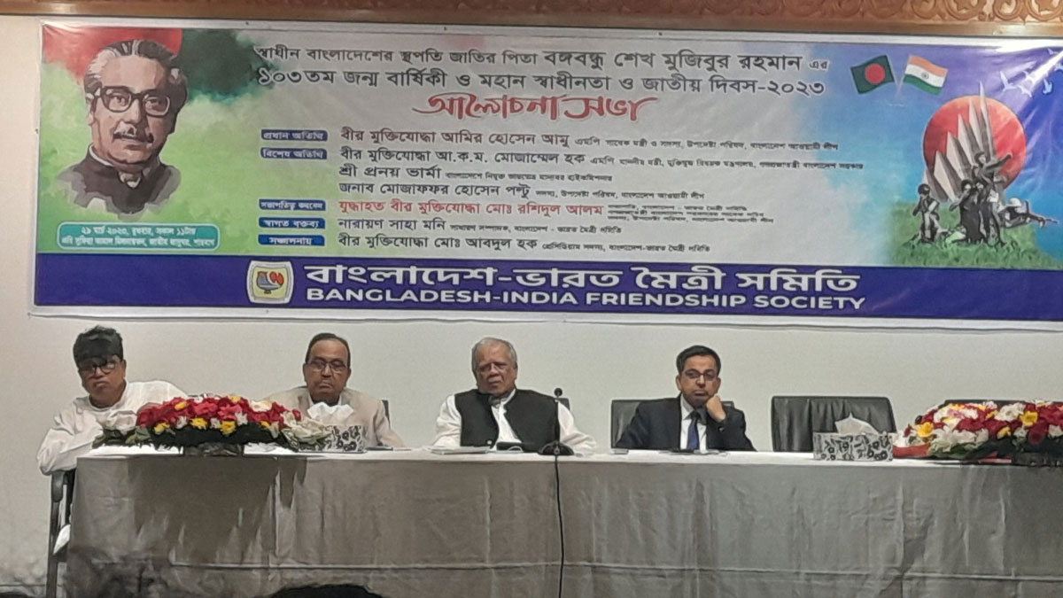বুধবার (২৯ মার্চ) রাজধানীর শাহবাগের জাতীয় যাদুঘরে স্বাধীন বাংলাদেশের স্থপতি বঙ্গবন্ধু শেখ মুজিবুর রহমানের ১০৩তম জন্মবার্ষিকী এবং মহান স্বাধীনতা ও জাতীয় দিবস উপলক্ষে বাংলাদেশ-ভারত মৈত্রী সমিতির আলোচনা সভায় তিনি এ মন্তব্য করেন।