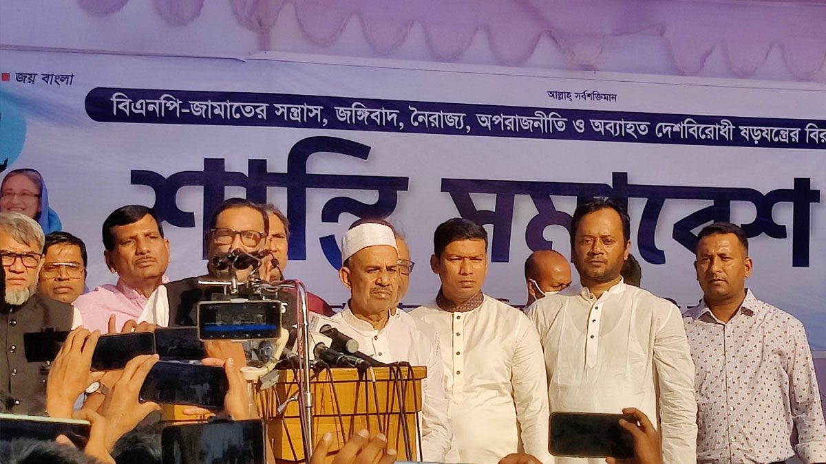 সোমবার (১০এপ্রিল) আওয়ামী লীগ কেন্দ্রীয় কার্যালয়ের সামনে ঢাকা মহানগর দক্ষিণ আওয়ামী লীগ আয়োজিত শান্তি সমাবেশে তিনি এ কথা বলেন।