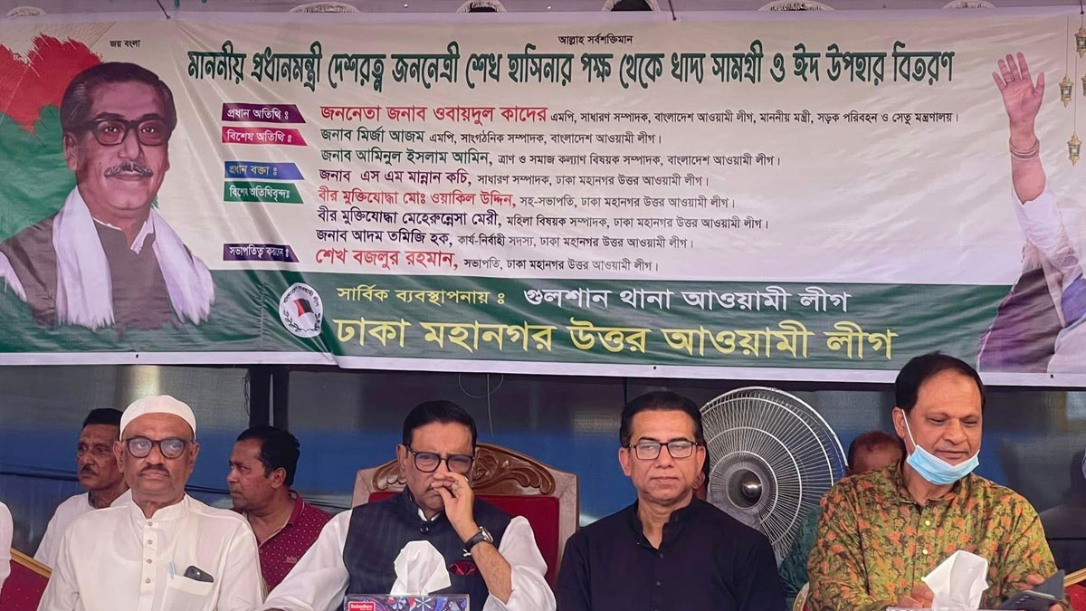 মঙ্গলবার (১১ এপ্রিল) বিকেলে রাজধানীর গুলশানে ঢাকা মহানগর উত্তর আওয়ামী লীগ আয়োজিত প্রধানমন্ত্রী শেখ হাসিনার পক্ষে খাদ্য সামগ্রী ও ঈদ উপহার বিতরণ অনুষ্ঠানে তিনি এ কথা বলেন।