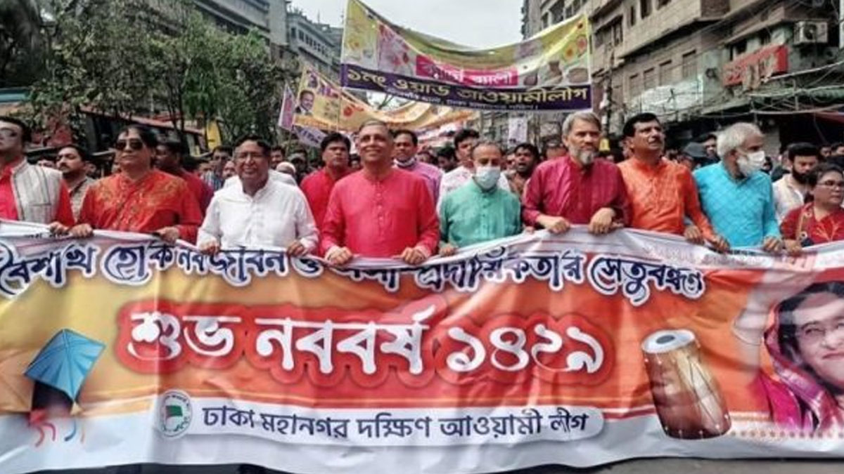 বাংলা নববর্ষ উপলক্ষ্যে বর্ণাঢ্য র্যালি ও শোভাযাত্রা বের করবে ঢাকা মহানগর দক্ষিণ আওয়ামী লীগ। শুক্রবার (১৪ এপ্রিল) সকালে রাজধানীর বাহাদুর শাহ পার্ক থেকে র্যালিটি শুরু হবে। এতে আওয়ামী লীগের সাধারণ সম্পাদকসহ কেন্দ্রীয় নেতারা অংশ নেবেন।