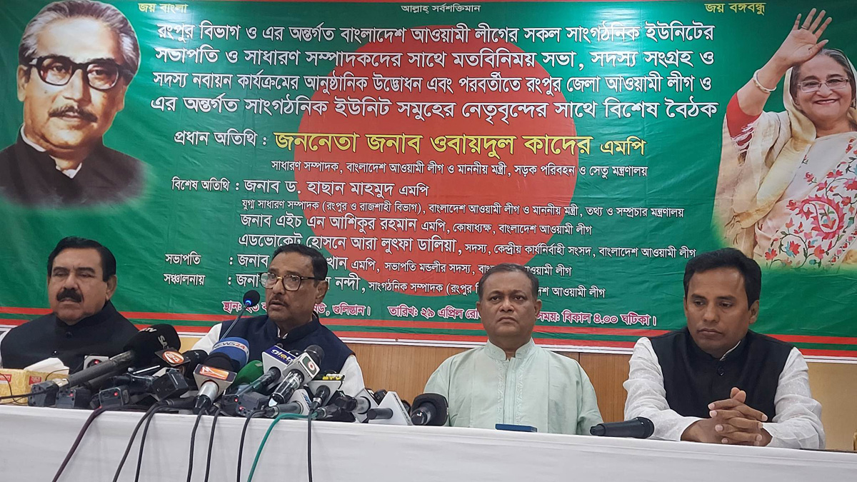 শনিবার (২৯ এপ্রিল) বিকেলে দলের কেন্দ্রীয় কার্যালয়ে রংপুর জেলা আওয়ামী লীগ নেতাদের সঙ্গে বৈঠকে এ কথা বলেন তিনি।