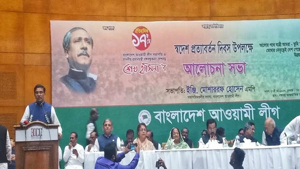 বুধবার (১৭ মে) বিকেল সাড়ে তিনটায় রাজধানীর বঙ্গবন্ধু আন্তর্জাতিক সম্মেলন কেন্দ্রে প্রধানমন্ত্রী ও আওয়ামী লীগ সভাপতি শেখ হাসিনার ৪৩তম স্বদেশ প্রত্যাবর্তন দিবস উপলক্ষ্যে আলোচনা সভায় অংশ নিয়ে তিনি এসব কথা বলেন। আলোচনা সভায় সভাপতিত্ব করেন আওয়ামী লীগের সভাপতিমণ্ডলীর সদস্য ইঞ্জি. মোশাররফ হোসেন।