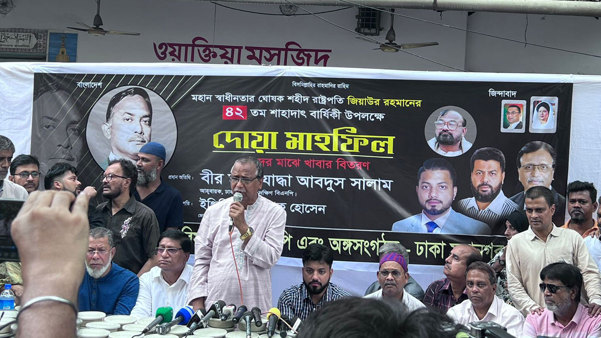 রোববার (১১ জুন) রাজধানীর গোপীবাগে বিএনপির প্রতিষ্ঠা চেয়ারম্যান জিয়াউর রহমানের ৪২তম শাহাদাত বার্ষিকী উপলক্ষ্যে আলোচনা সভা ও খাবার বিতরণ অনুষ্ঠানে এসব কথা বলেন তিনি।