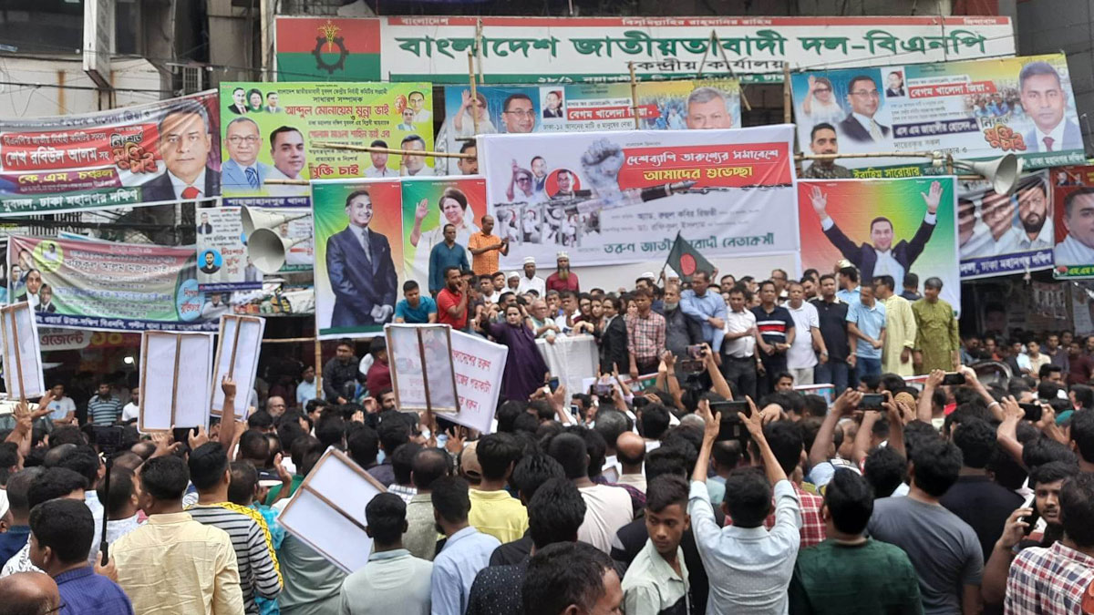 রাজধানীর নয়াপল্টনে বিএনপির কেন্দ্রীয় কার্যালয়ের সামনে থেকে দুপুর আড়াইটায় মগবাজার পর্যন্ত মিছিল করার কথা ছিল দলটির তিন অঙ্গসংগঠন যুবদল, স্বেচ্ছাসেবক দল ও ছাত্রদলের। তারুণ্যের সমাবেশের প্রস্তুতির অংশ হিসেবে তাদের এই মিছিল করার কথা। কিন্তু বৃষ্টি ও পরে বৃষ্টির পানি জমে থাকার কারণে নির্ধারিত সময়ে মিছিল শুরু করতে পারেনি তারা। তবে, সড়কের পানি কিছুটা কমে এলে বিকেল ৩টা থেকে মিছিলের প্রস্তুতি নিতে শুরু করে তিন সংগঠন।
