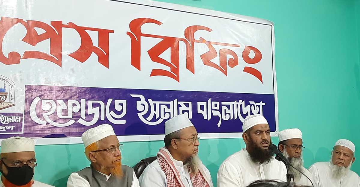 সংবাদ সম্মেলনে হেফাজতে ইসলামের কেন্দ্রীয় নেতারা
