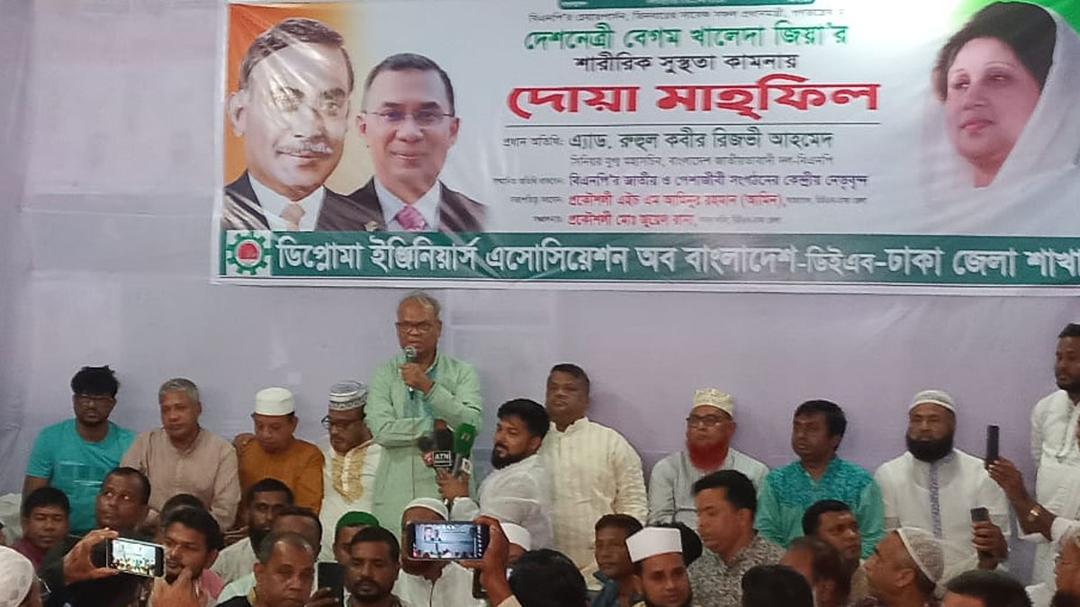 শুক্রবার (২৩ জুন) দুপুরে নয়া পল্টনে বিএনপির কেন্দ্রীয় কার্যালয়ে দোয়া ও মিলাদ মাহফিলে এসব কথা বলেন তিনি। বিএনপি চেয়ারপারসন খালেদা জিয়ার সুস্বাস্থ্য কামনায় এই দোয়া মাহফিলের আয়োজন করে ডিপ্লোমা ইঞ্জিনিয়ার্স অ্যাসোসিয়েশন অব বাংলাদেশ (ডিইএব) ঢাকা জেলা শাখা।