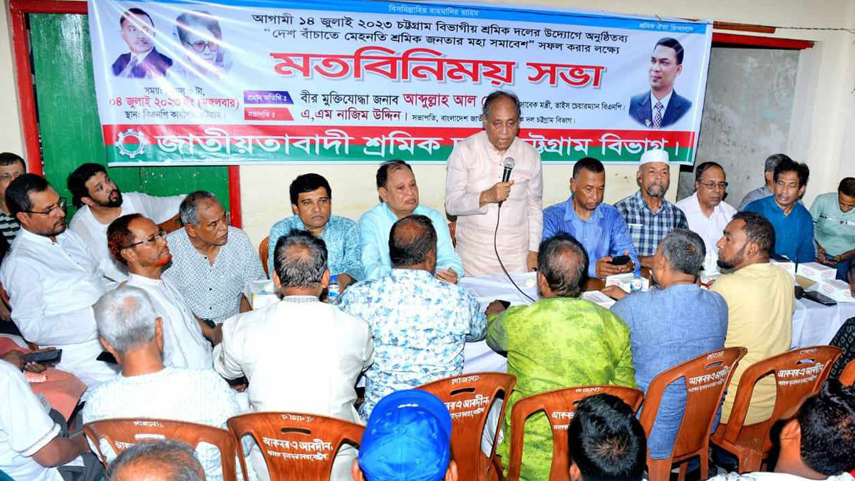 মঙ্গলবার (৪ জুলাই) কাজীর দেউরি দলীয় কার্যালয়ে আগামী ১৪ জুলাই চট্টগ্রাম বিভাগীয় শ্রমিক সমাবেশ সফল করার লক্ষ্যে মতবিনিময় সভায় প্রধান অতিথির বক্তব্যে তিনি এসব কথা বলেন।