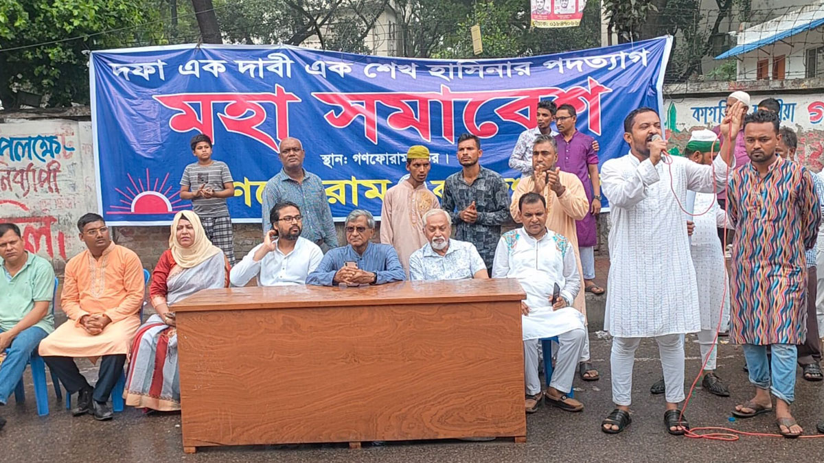 শুক্রবার (২৮ জুলাই) বিকেল ৩টায় মতিঝিল গণফোরাম চত্বরে শেখ হাসিনার পদত্যাগ ও নির্দলীয় নিরপেক্ষ সরকার প্রতিষ্ঠায় যুগপৎ ধারায় মহাসমাবেশ পালন করে গণফোরাম ও বাংলাদেশ পিপলস পার্টি।