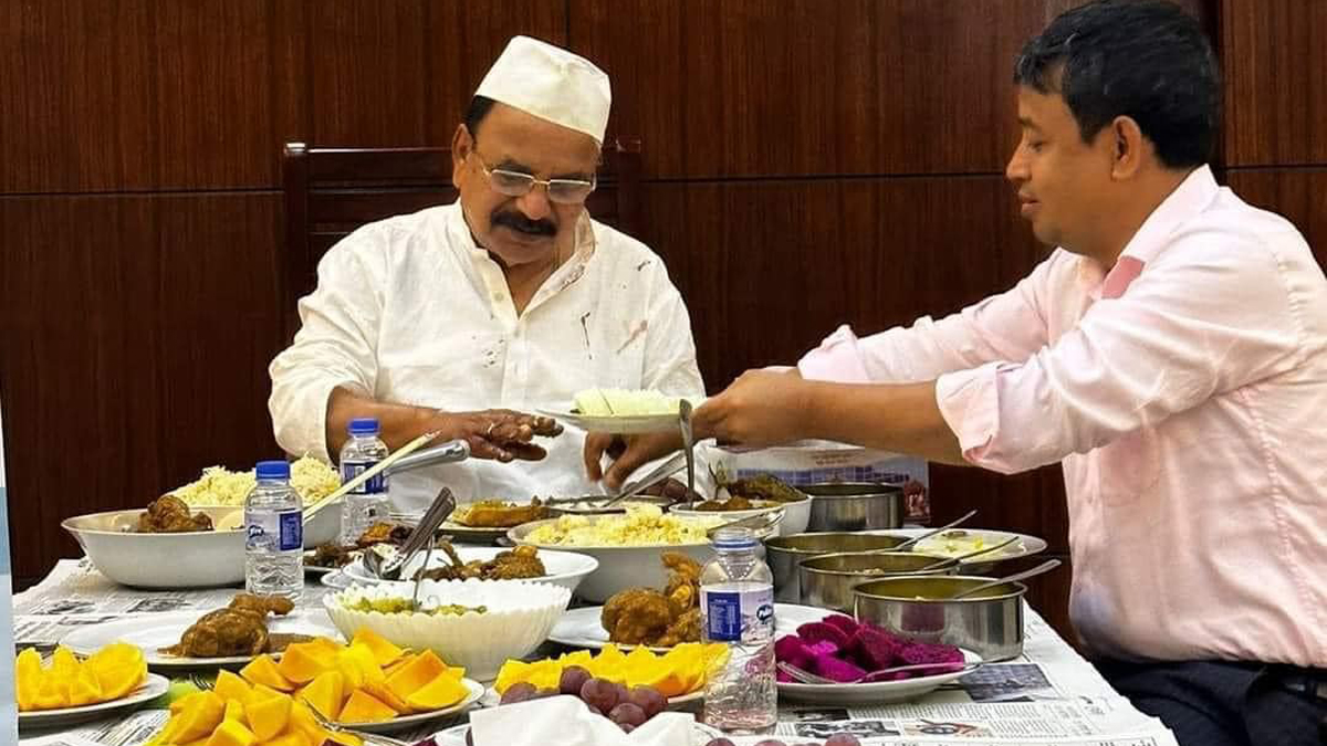 সামাজিক যোগাযোগ মাধ্যমে ছড়িয়ে পড়া ছবি ও ভিডিওতে দেখা গেছে, বিএনপি নেতা গয়েশ্বর হাসিমুখে ডিবি প্রধানের সঙ্গে বিভিন্ন পদের খাবার খাচ্ছেন। ডিবি প্রধান তার অতিথির পাতে খাবার তুলে দিচ্ছেন। খাবারের তালিকায় খাসি ও মুরগির মাংস, একাধিক মাছের তরকারি, রোস্ট ও সবজি এবং মৌসুমি ফলের মধ্যে আম, মালটা, আঙুর ও ড্রাগন ফল দেখা যায়।