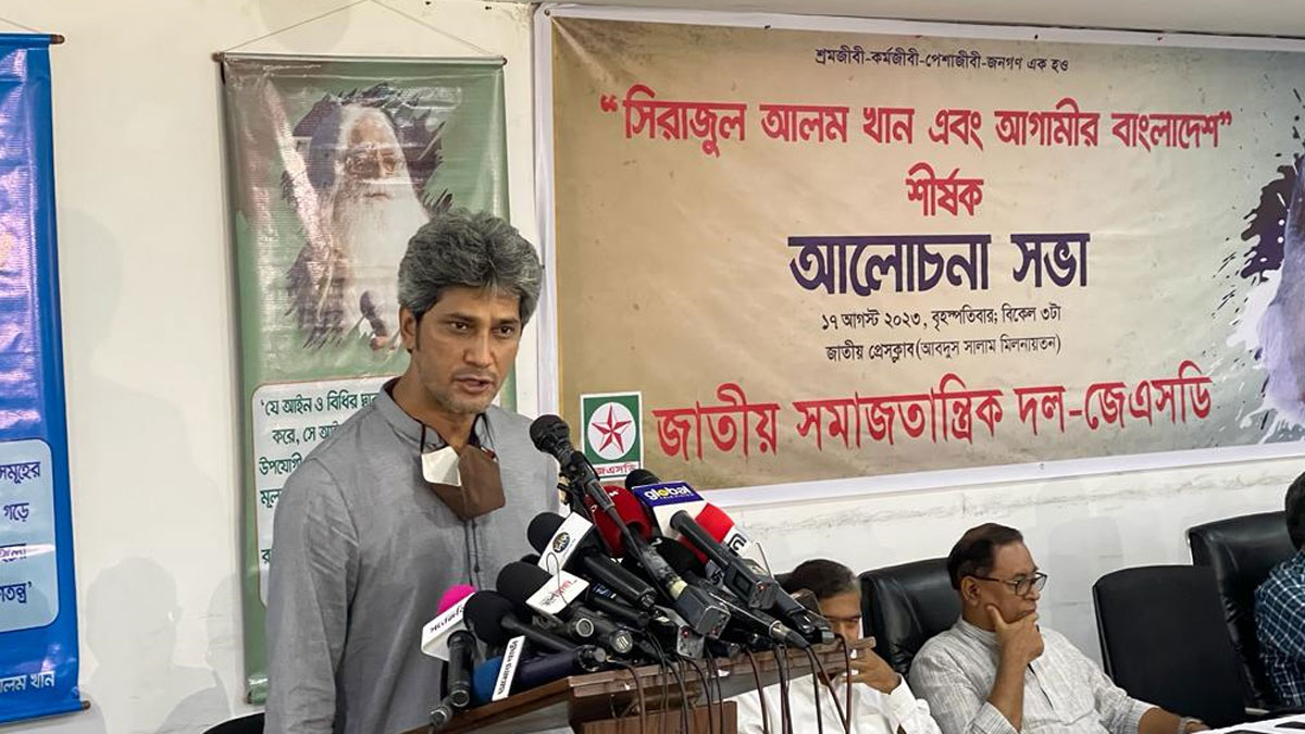বৃহস্পতিবার (১৭ আগস্ট) জাতীয় প্রেস ক্লাবে জাতীয় সমাজতান্ত্রিক দল জেএসডি’র উদ্যোগে আয়োজিত সিরাজুল আলম খান এবং আগামীর বাংলাদেশ শীর্ষক আলোচনা সভায় তিনি এসব কথা বলেন।