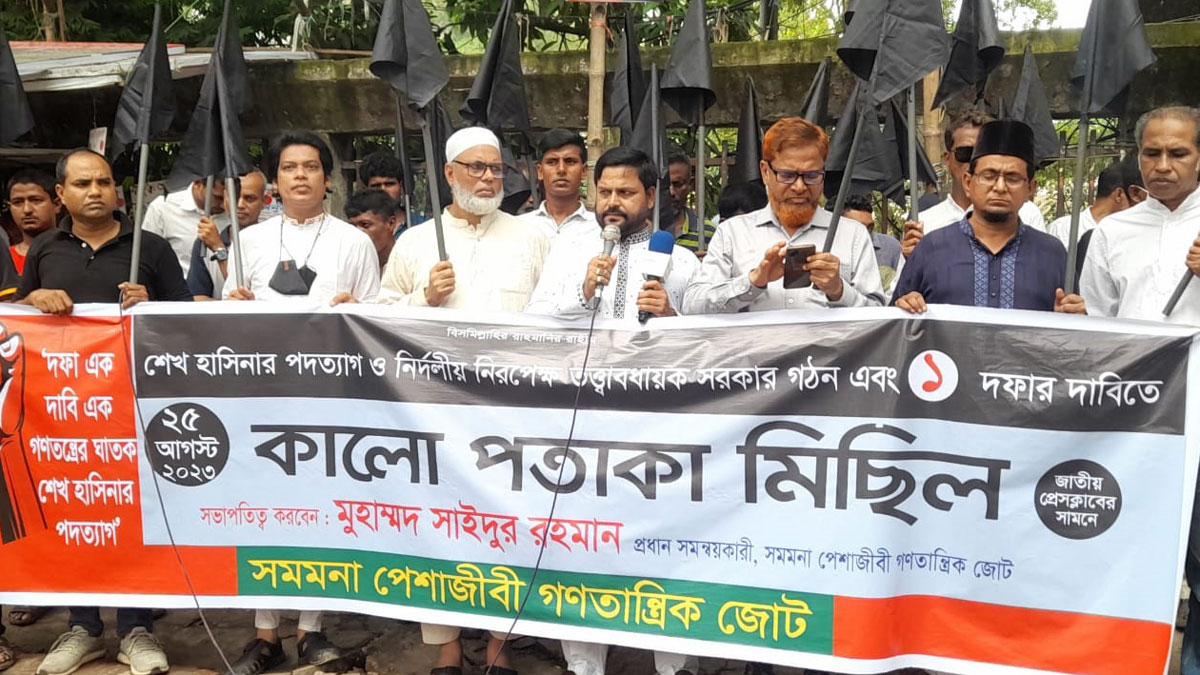 শুক্রবার (২৫ আগস্ট) প্রেস ক্লাবের সামনে শেখ হাসিনার পদত্যাগ ও নির্দলীয় নিরপেক্ষ সরকার, তত্ত্বাবধায়ক সরকার গঠন এবং এক দফার দাবিতে আয়োজিত কালো পতাকা মিছিলপূর্ব সমাবেশে তিনি এ কথা বলেন।